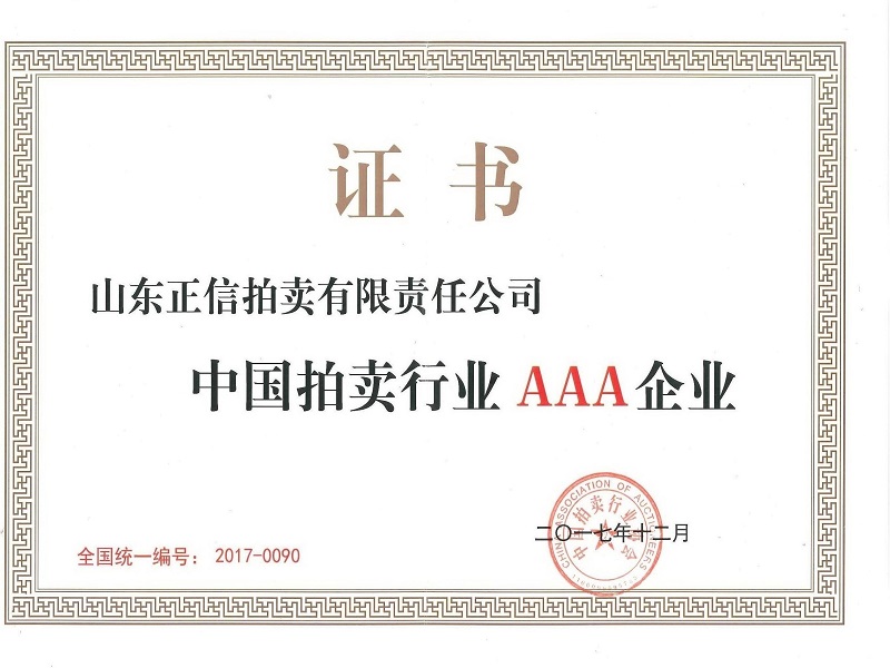 中國拍賣行業(yè)協(xié)會AAA級企業(yè)